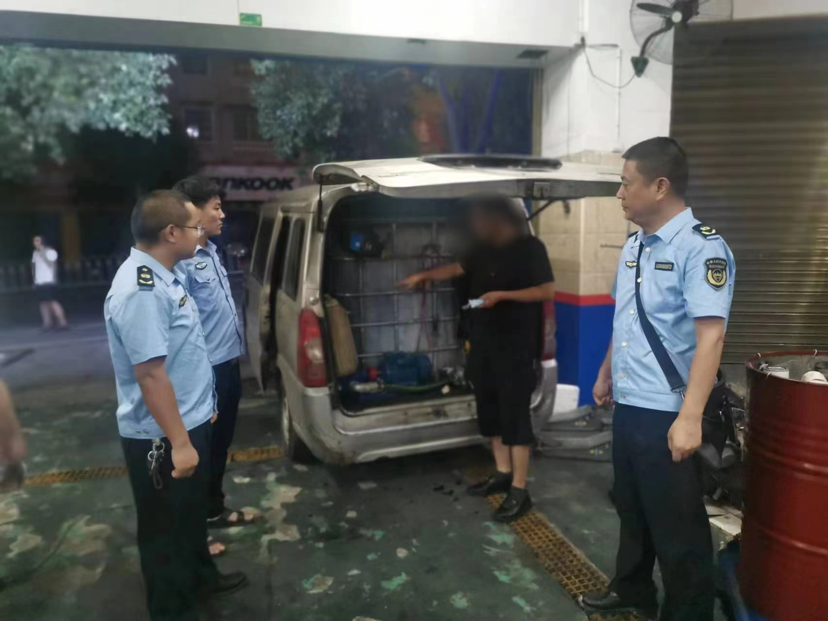 根據群眾舉報:一輛湘F牌照的面包車(chē)在雁峰區某汽車(chē)維修店違法從事廢礦物油收購。衡陽(yáng)市生態(tài)環(huán)境保護綜合行政執法支隊雁峰大隊執法人員第一時(shí)間趕赴現場(chǎng),同時(shí)將線(xiàn)索通報雁峰公安分局。生態(tài)環(huán)境、公安部門(mén)聯(lián)合執法,現場(chǎng)查扣非法改裝的面包車(chē)及違法收購的廢礦物油1.59噸。經(jīng)調查詢(xún)問(wèn),當事人柳某某(面包車(chē)車(chē)主)、徐某某(雁峰區某汽車(chē)維修店工作人員)對其非法收購、售賣(mài)廢礦物油的違法行為供認不諱,并進(jìn)行了現場(chǎng)指認。